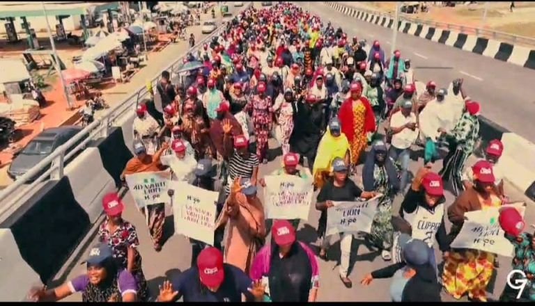 Bámúbámú ni gbogbo ọ̀nà igboro ìlú Lokoja kún fún àwọn olùfẹ̀hónú hàn tí gbogbo wọn gbé pátákó Ajúwe tó ń kìlọ̀ fún àjọ EFCC kí ó fi Yahaya Bello lọ́rùn sílẹ̀ lọ́wọ́ kóówa wọn.